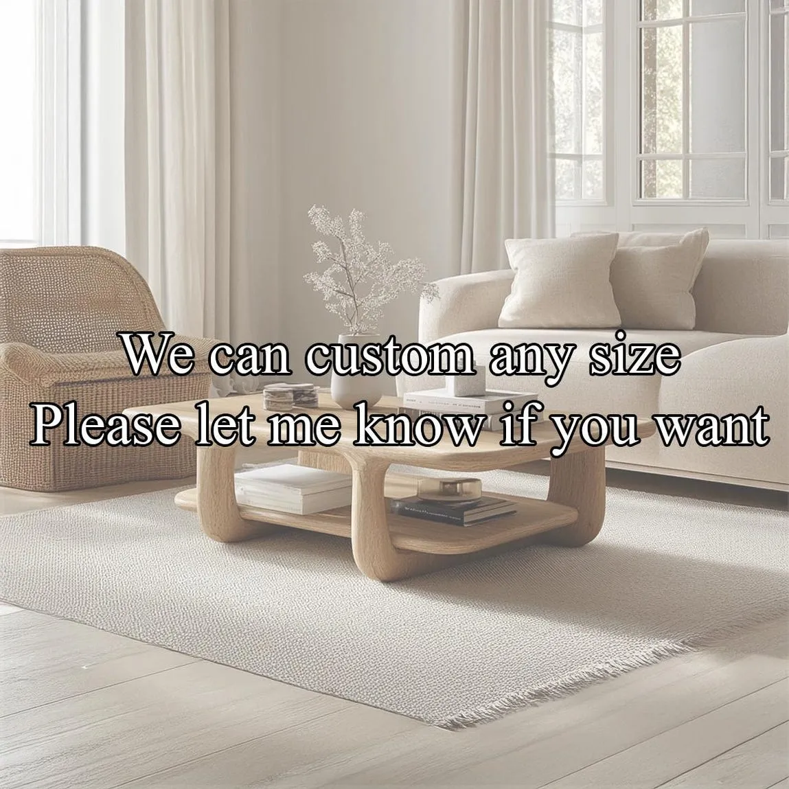 Included: assembled coffee table and a simple care guide. If you need a specific footprint to suit a compact sofa or an open‑plan sectional, custom sizing is available on request.